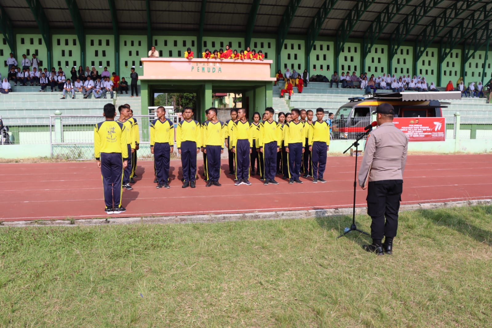 KBO Sat Binmas Polres Aceh Tenggara,Iptu Junaidi Desky mengucapkan terima kasih atas partisipasi rekan-rekan untuk mengikuti kegiatan berupa berbagai perlombaan yang diadakan Polres Aceh Tenggara dalam rangka menyambut hari Bhayangkara yang ke-77 termasuk pertandingan PBB tingkat SMP/SMA ini.