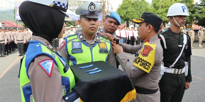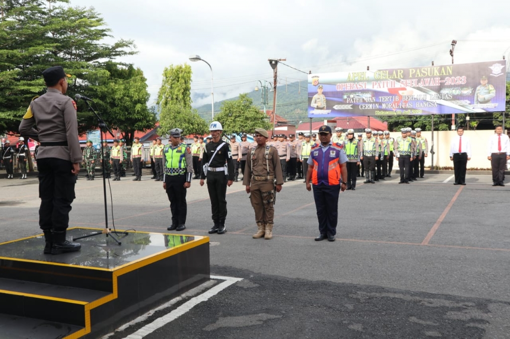 Apel gelar pasukan dalam rangka operasi patuh Seulawah 2023 Polres Aceh Tenggara digelar bersama instansi terkait, Kodim 1018/Agara, Dansubdenpom, Dishub dan Satpol PP Aceh Tenggara, Senin (10/7/2023).