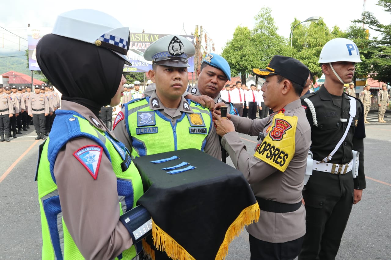 Apel gelar pasukan dalam rangka operasi patuh Seulawah 2023 Polres Aceh Tenggara digelar bersama instansi terkait, Kodim 1018/Agara, Dansubdenpom, Dishub dan Satpol PP Aceh Tenggara, Senin (10/7/2023).