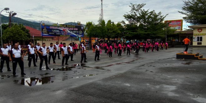 Personel Polres Aceh Tenggara beserta Bhayangkari melaksanakan kegiatan olahraga pagi yang sudah menjadi kegiatan rutin yang dilaksanakan pada hari jum’at. pada Minggu sebelumnya pelaksanaan olah raga di isi dengan jalan santai, kali ini olahraga di isi dengan Senam pagi di Lapangan Apel Polres Aceh Tenggara. Jum’at (14/07/2023).