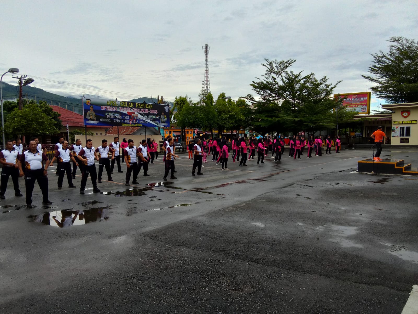 Personel Polres Aceh Tenggara beserta Bhayangkari melaksanakan kegiatan olahraga pagi yang sudah menjadi kegiatan rutin yang dilaksanakan pada hari jum’at. pada Minggu sebelumnya pelaksanaan olah raga di isi dengan jalan santai, kali ini olahraga di isi dengan Senam pagi di Lapangan Apel Polres Aceh Tenggara. Jum’at (14/07/2023).