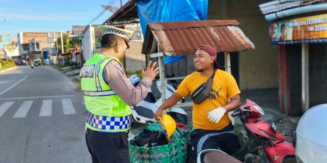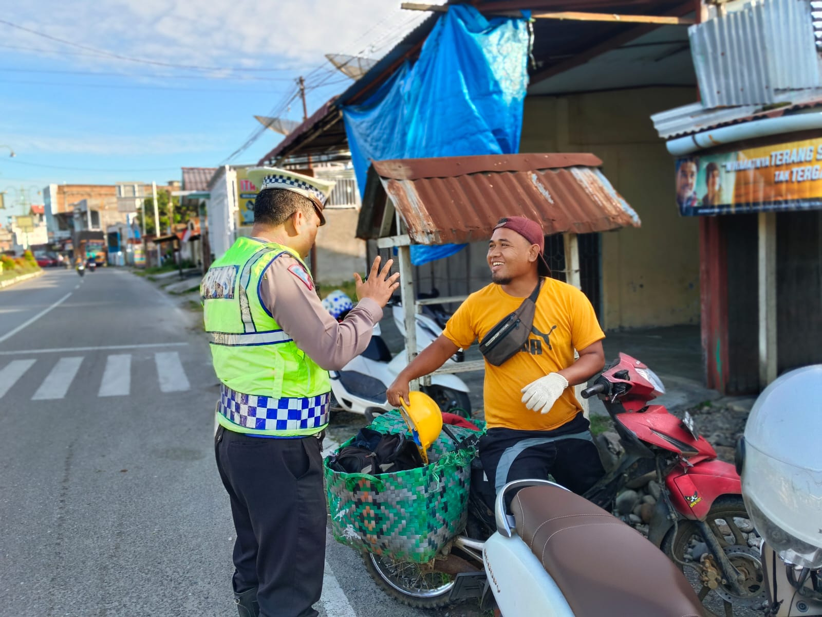 Sebagai bentuk kepedulian keselamatan warga dan upaya menciptakan Kamseltibcarlantas, Personel Polres Aceh Tenggara jajaran Polda Aceh menegur secara humanis pengendara sepeda motor yang tidak pakai Helm saat berkendaraan, Kamis (08/09/2023) pagi.