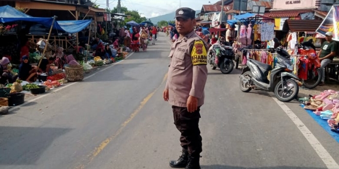 Personel Polsek Badar Lakukan Pengaturan Lalu Lintas dan Pengamanan di Pasar Tumpah Desa Jongar