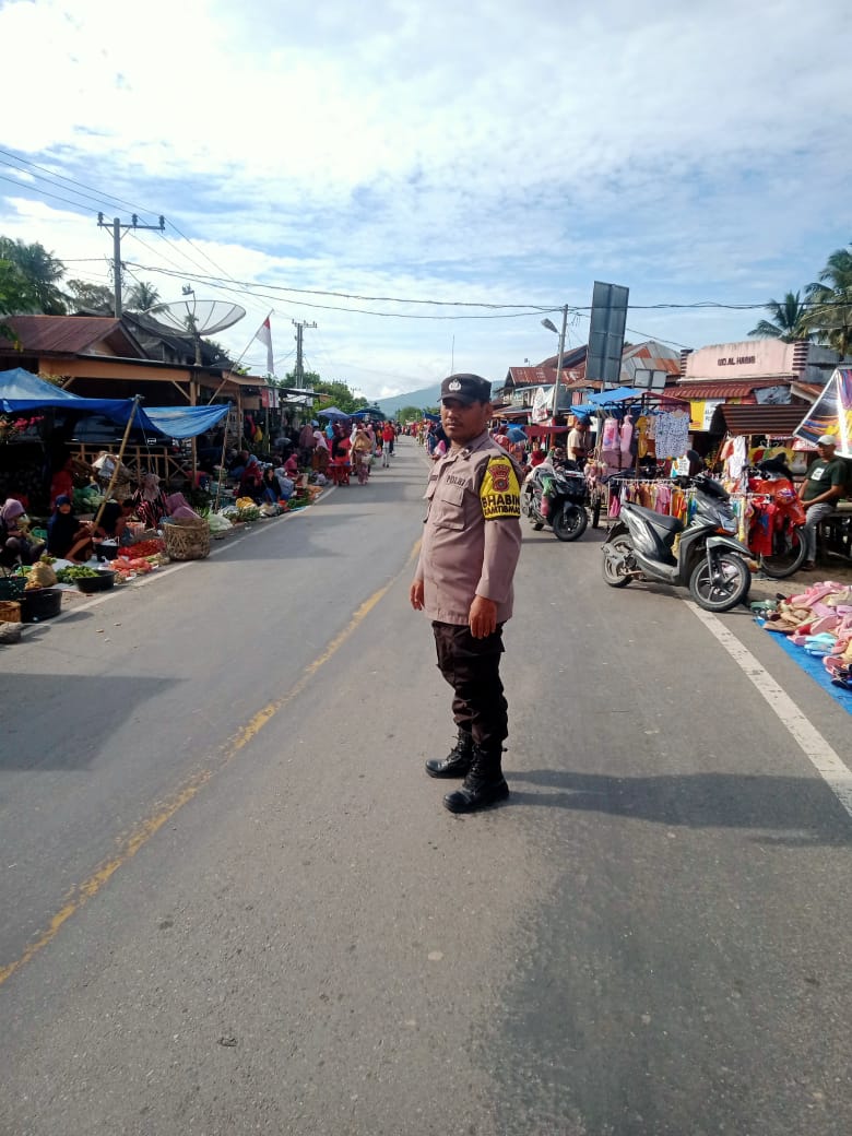 Personel Polsek Badar Lakukan Pengaturan Lalu Lintas dan Pengamanan di Pasar Tumpah Desa Jongar