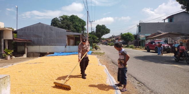 Dalam usahanya untuk mendekatkan diri dengan warga, Briptu Hutapea mengunjungi petani jagung di Desa Cinta Damai untuk memberikan bantuan dengan menjemur hasil kebun mereka. Dalam cuaca cerah yang melimpah pada Rabu pagi ini, petani desa bersama Bhabinkamtibmas bekerja sama dengan penuh semangat.