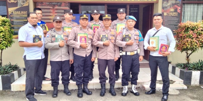 Kapolsek Lawe Bulan, Ipda Abi Naim Menginspirasi dengan Membagikan Al-Quran kepada Seluruh Personel Polsek Lawe Bulan, Senin 02 Oktober 2023.