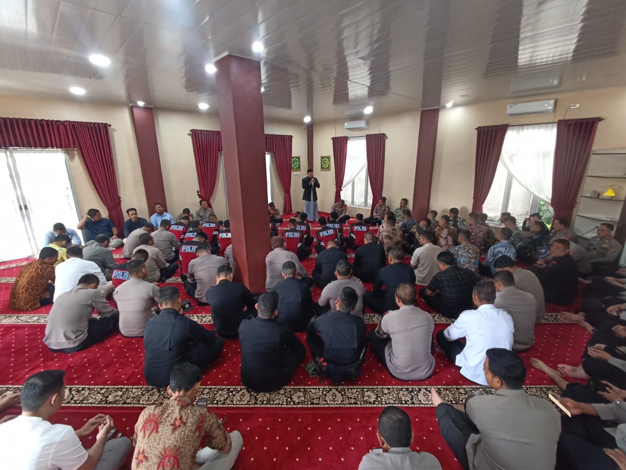 Personel Polres Aceh Tenggara melaksanakan kegiatan Bimbingan Mental (Bintal) di Musholla Wicaksana Leghawa, sebagai bagian dari upaya meningkatkan spiritualitas dan keimanan anggota polisi. Acara ini dihadiri oleh puluhan personel polisi serta warga sekitar. 8 Desember 2023