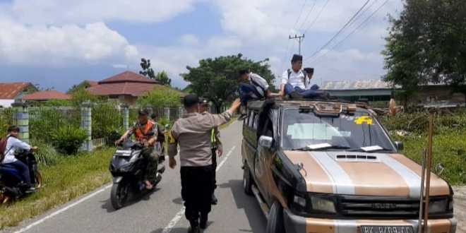 Petugas Polsek Lawe Alas memberikan penjelasan kepada para supir mengenai bahaya membawa penumpang di atas mobil, seperti potensi kecelakaan, risiko cedera, dan konsekuensi hukum yang dapat dihadapi oleh para pengemudi.