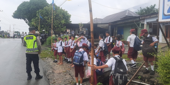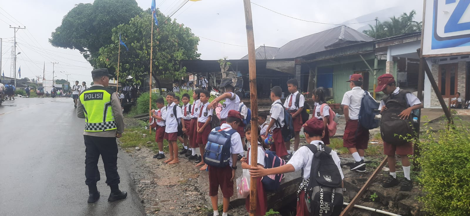 Personel Polsek Babul Makmur melakukan kegiatan himbauan kepada para siswa Sekolah Dasar (SD) di wilayah hukum mereka. Himbauan tersebut bertujuan untuk meningkatkan kesadaran anak-anak dalam berlalu lintas, terutama saat mereka akan menyeberang jalan menuju sekolah. 19 Desember 2023