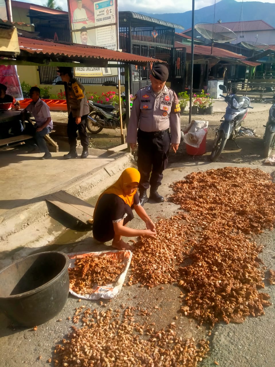 Personel Polsek Semadam, Kabupaten Aceh Tenggara, aktif terlibat dalam kegiatan peningkatan ketahanan pangan masyarakat dengan melakukan pengecekan hasil panen biji kakao di Wilayah Hukum (Wilkum) Desa Ngkeran Alur Buluh, Kecamatan Semadam. Semadam, 05 Januari 2024