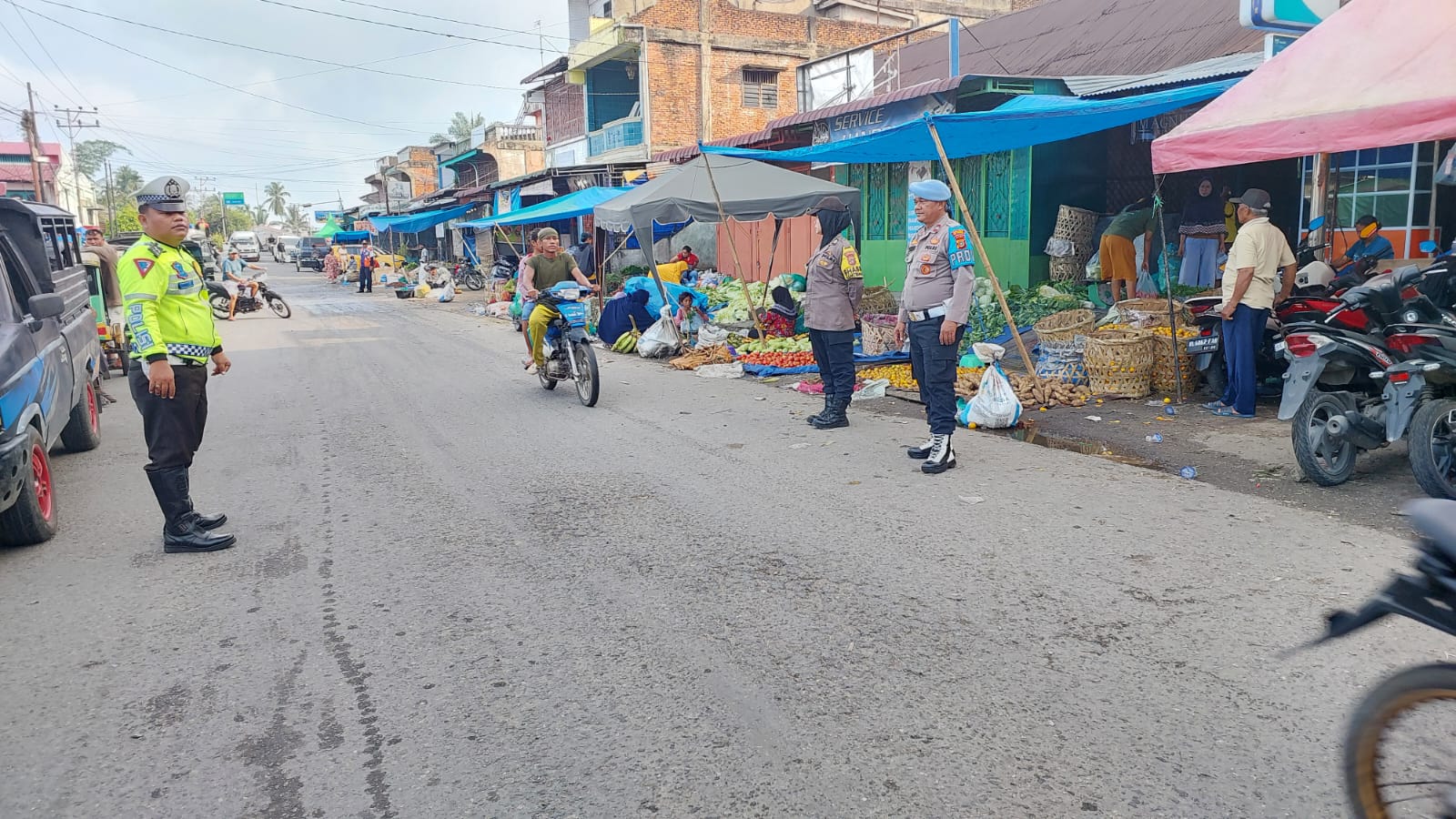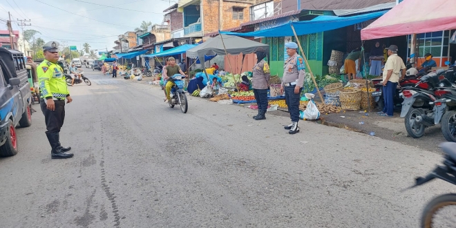 PERSONEL POLSEK LAWE SIGALA-GALA LAKUKAN PENGAMANAN DI PASAR TUMPAH LAWESIGALA-GALA UNTUK MENJAGA KETERTIBAN BERLALU LINTAS