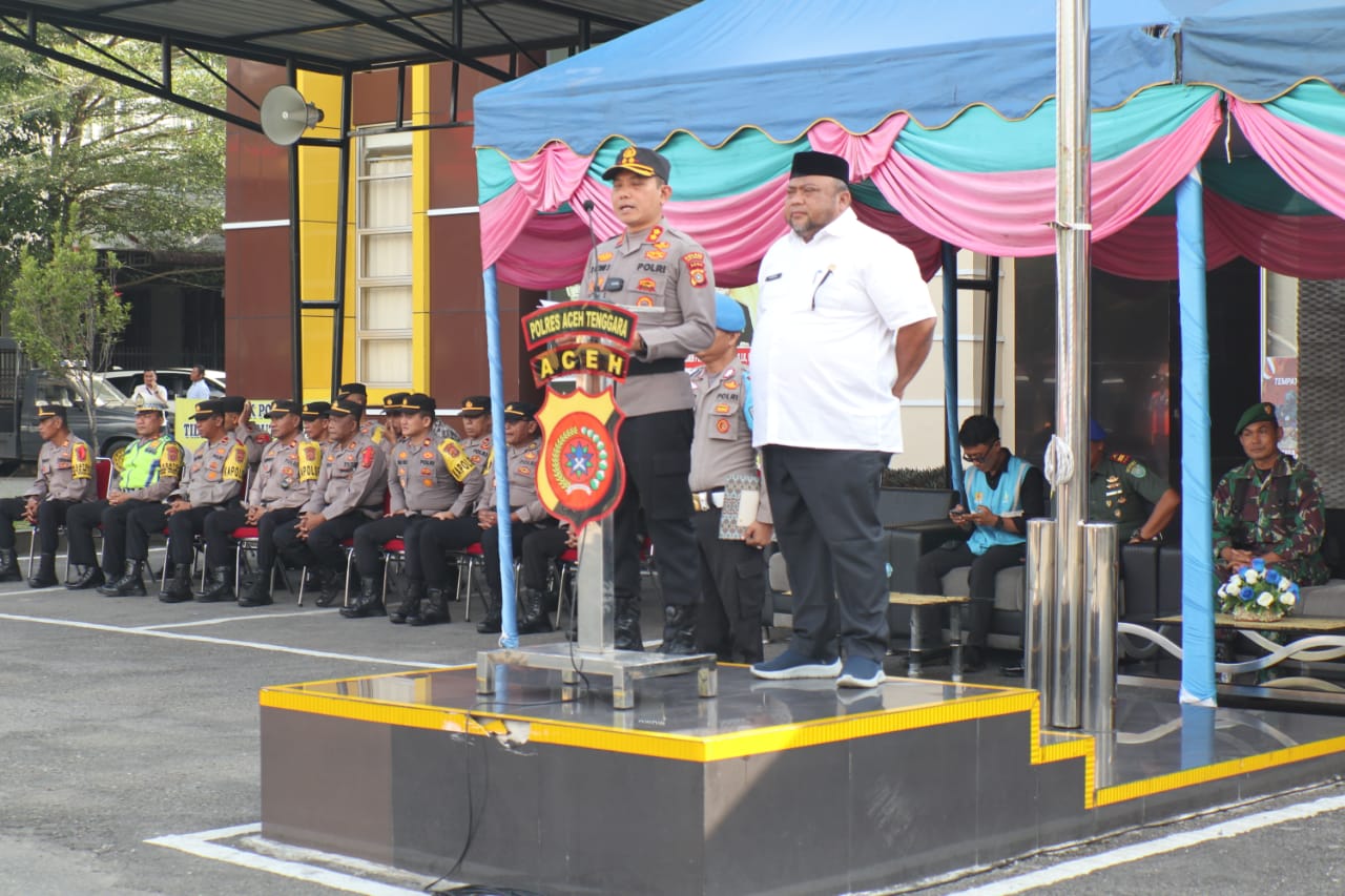 KAPOLRES AGARA DI DAMPINGI Pj SEKDAKAP ACEH TENGGARA PIMPIN APEL GELAR PASUKAN OPERASI KETUPAT SEULAWAH 2024