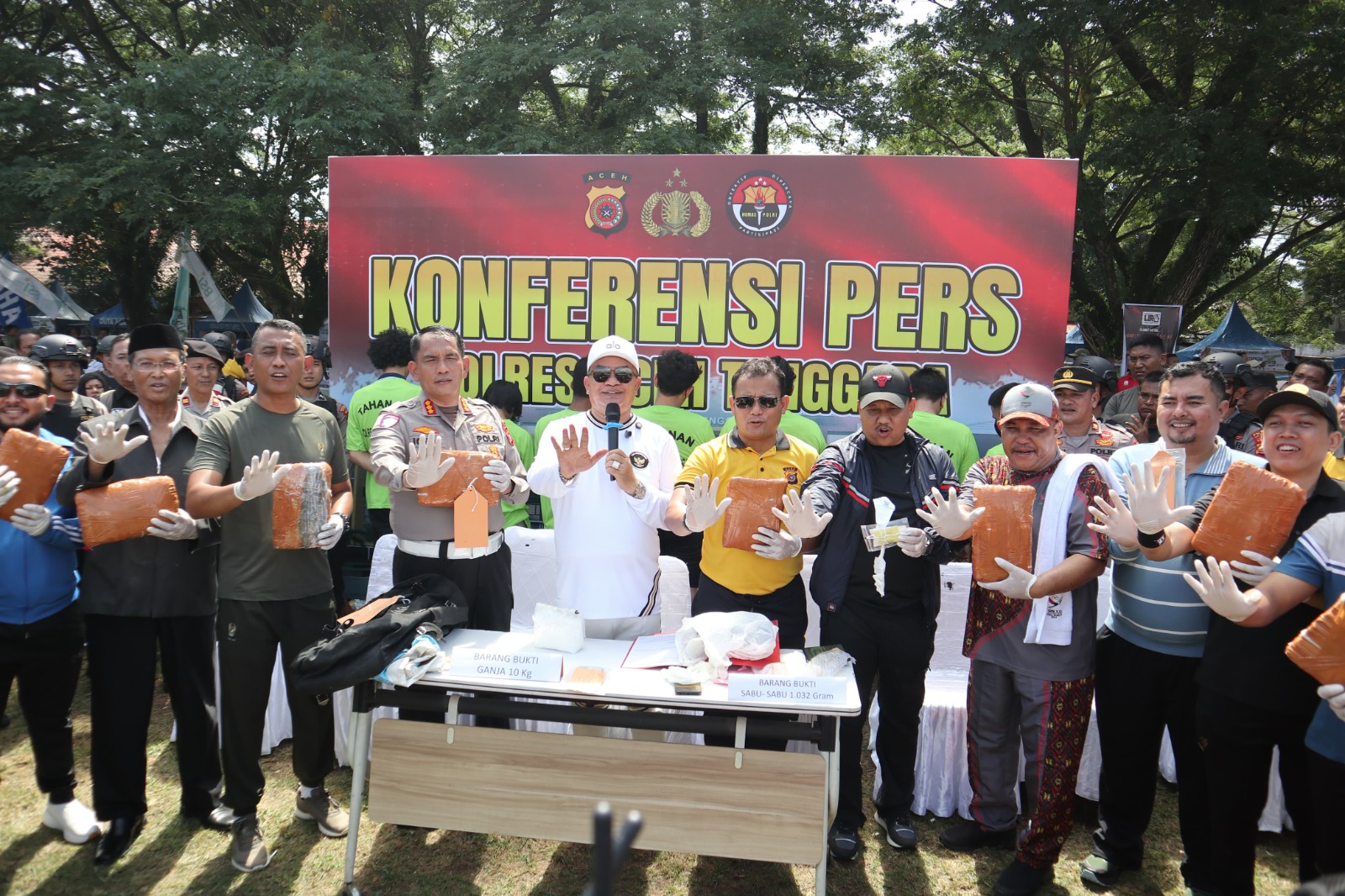 Konferensi pers diakhiri dengan penandatanganan komitmen bersama Forkopimda dan Polres Aceh Tenggara dalam melanjutkan perang terhadap narkoba dan permasalahan sosial lainnya di Kabupaten Aceh Tenggara.