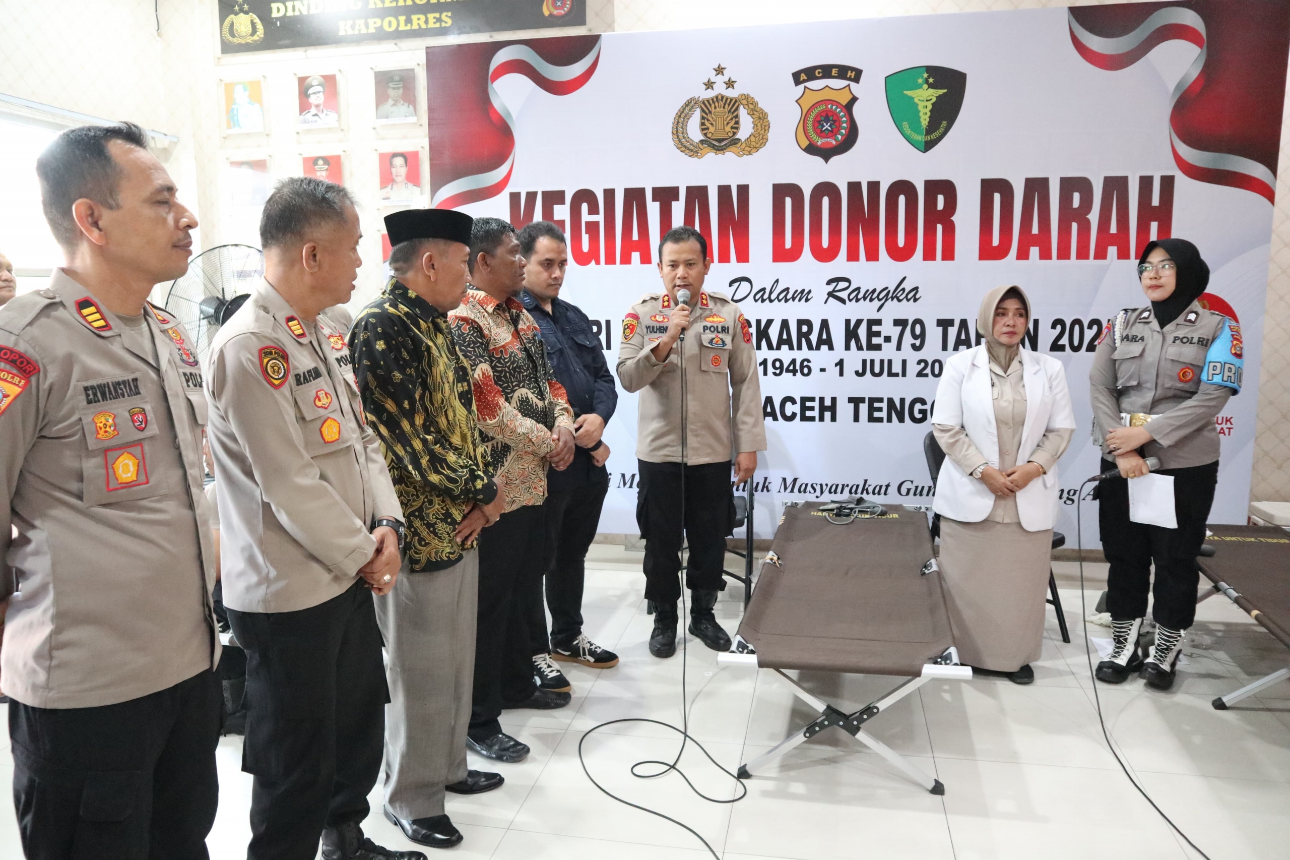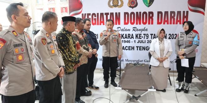 Dalam rangka memperingati Hari Bhayangkara ke-79 Tahun 2025, Polres Aceh Tenggara melaksanakan kegiatan donor darah yang berlangsung di lobby Mapolres Aceh Tenggara, Kamis (19/6/2025). Kegiatan ini merupakan bentuk kepedulian sosial Polri kepada masyarakat, dengan tema besar peringatan tahun ini yaitu “Polri Untuk Masyarakat”.