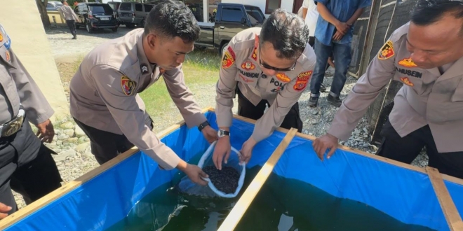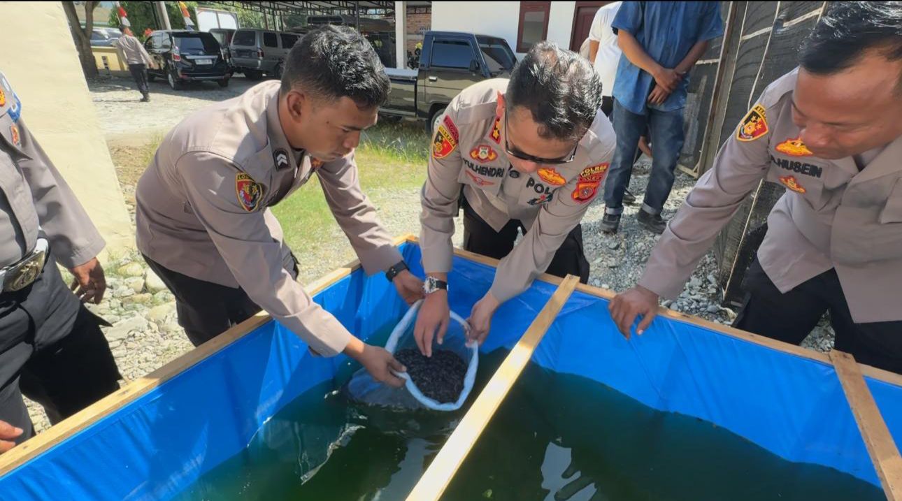Dalam rangka mendukung program ketahanan pangan nasional yang dicanangkan oleh Presiden Republik Indonesia, Kapolres bersama Waka Polres Aceh Tenggara melaksanakan kegiatan pembagian bibit ikan lele jenis Sangkuriang kepada seluruh Bagian (Bag), Satuan (Sat), Seksi (Sie), dan Polsek jajaran Polres Aceh Tenggara.