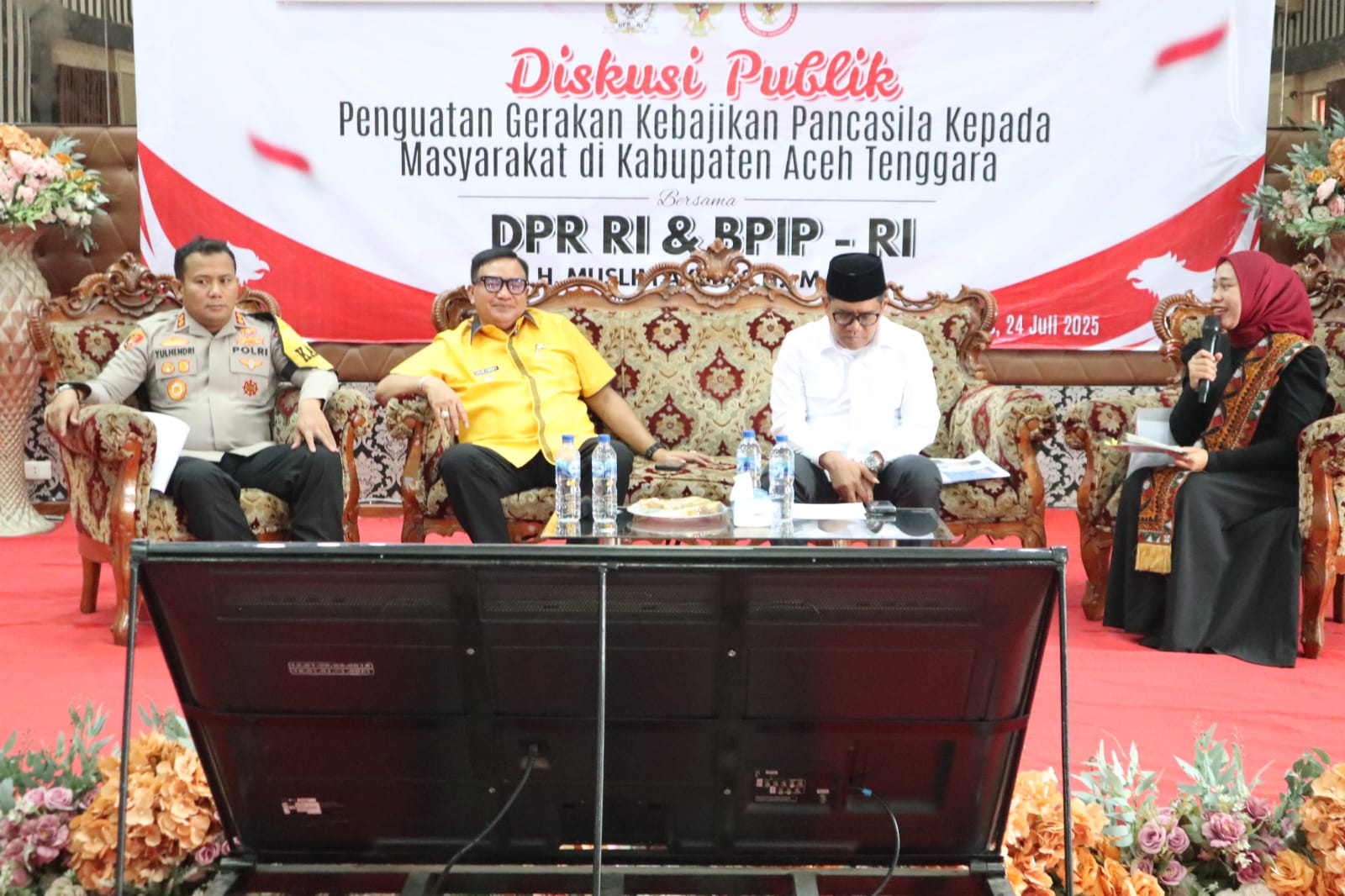 Kegiatan yang mengangkat tema penguatan nilai-nilai luhur Pancasila ini dihadiri oleh berbagai elemen masyarakat, tokoh agama, pemuda, serta unsur pemerintah daerah. Selain Kapolres, turut hadir sebagai narasumber Bupati Aceh Tenggara H. Muhammad Salim Fahri, S.E., M.M, dan anggota DPR RI H. Muslim Ayub, S.H., M.M.