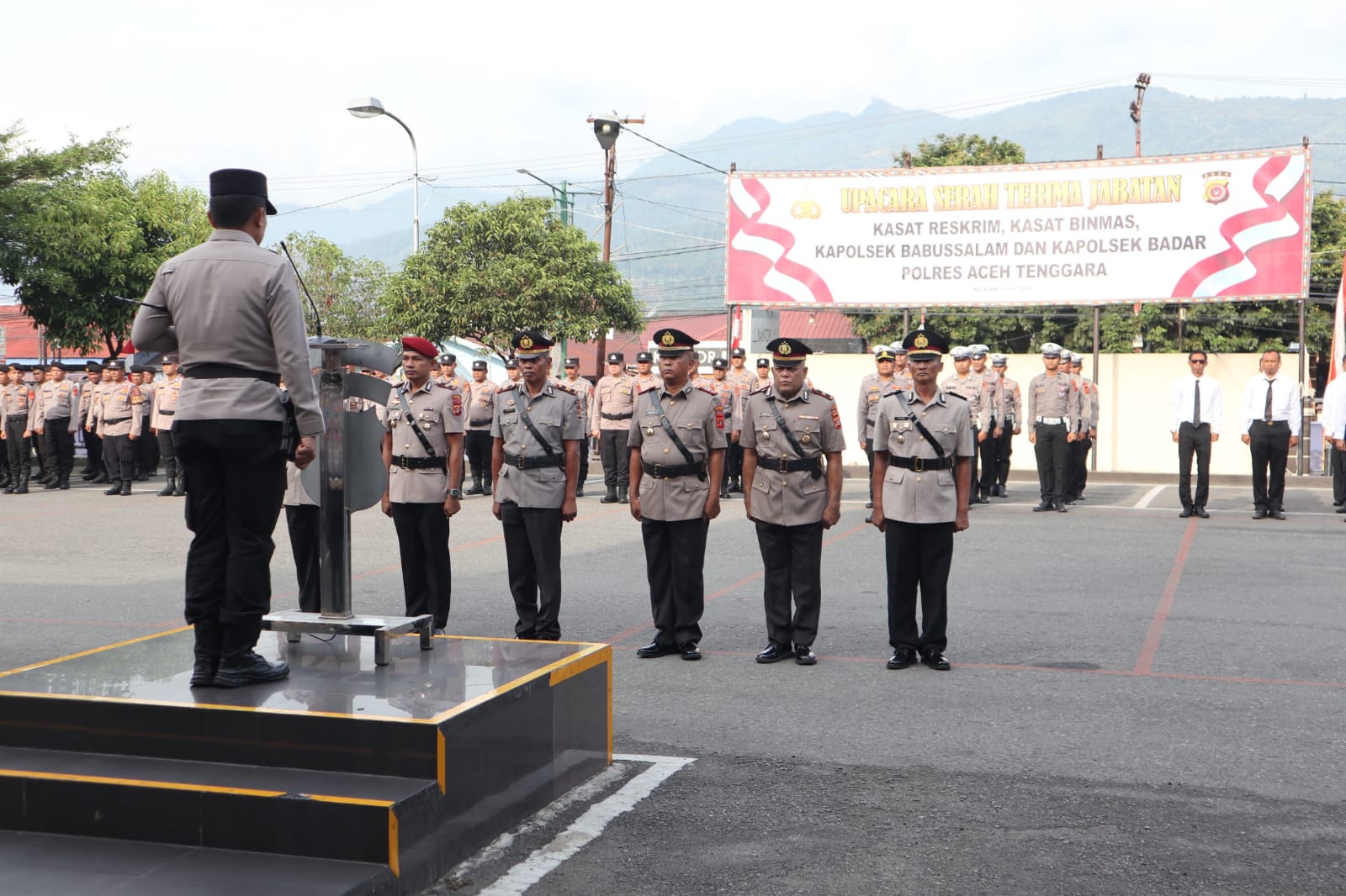 Kapolres juga menyampaikan apresiasi dan ucapan terima kasih kepada para pejabat lama atas dedikasi dan pengabdiannya selama bertugas di Polres Aceh Tenggara.