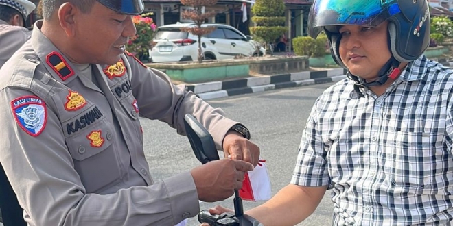 Jelang 17 Agustus, Satlantas Polres Aceh Tenggara Bagikan Bendera Merah Putih: Wujudkan Semangat Tertib Lalu Lintas dan Cinta Tanah Air