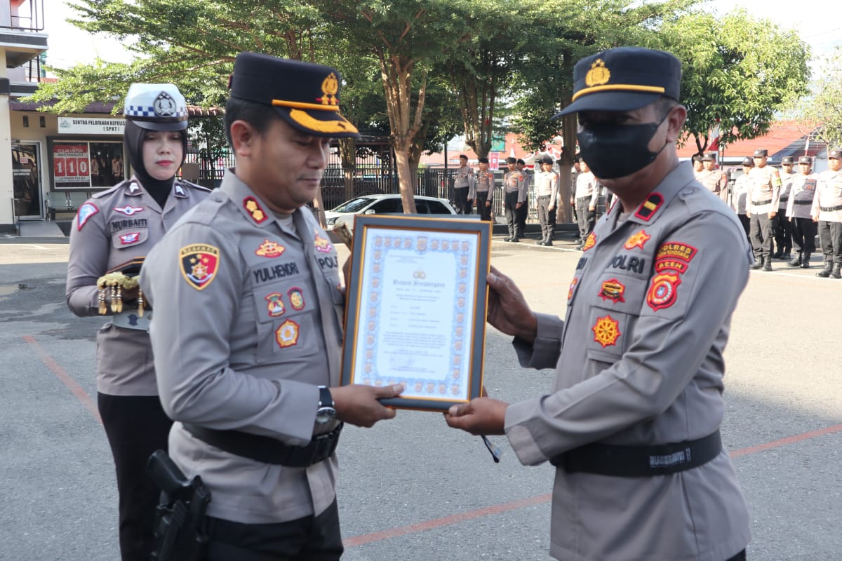 Sebagai bentuk apresiasi atas dedikasi dan keberhasilan dalam menjalankan tugas, Polres Aceh Tenggara menggelar upacara pemberian penghargaan secara simbolis kepada personel yang berprestasi dalam pengungkapan tindak pidana narkotika jenis ganja.