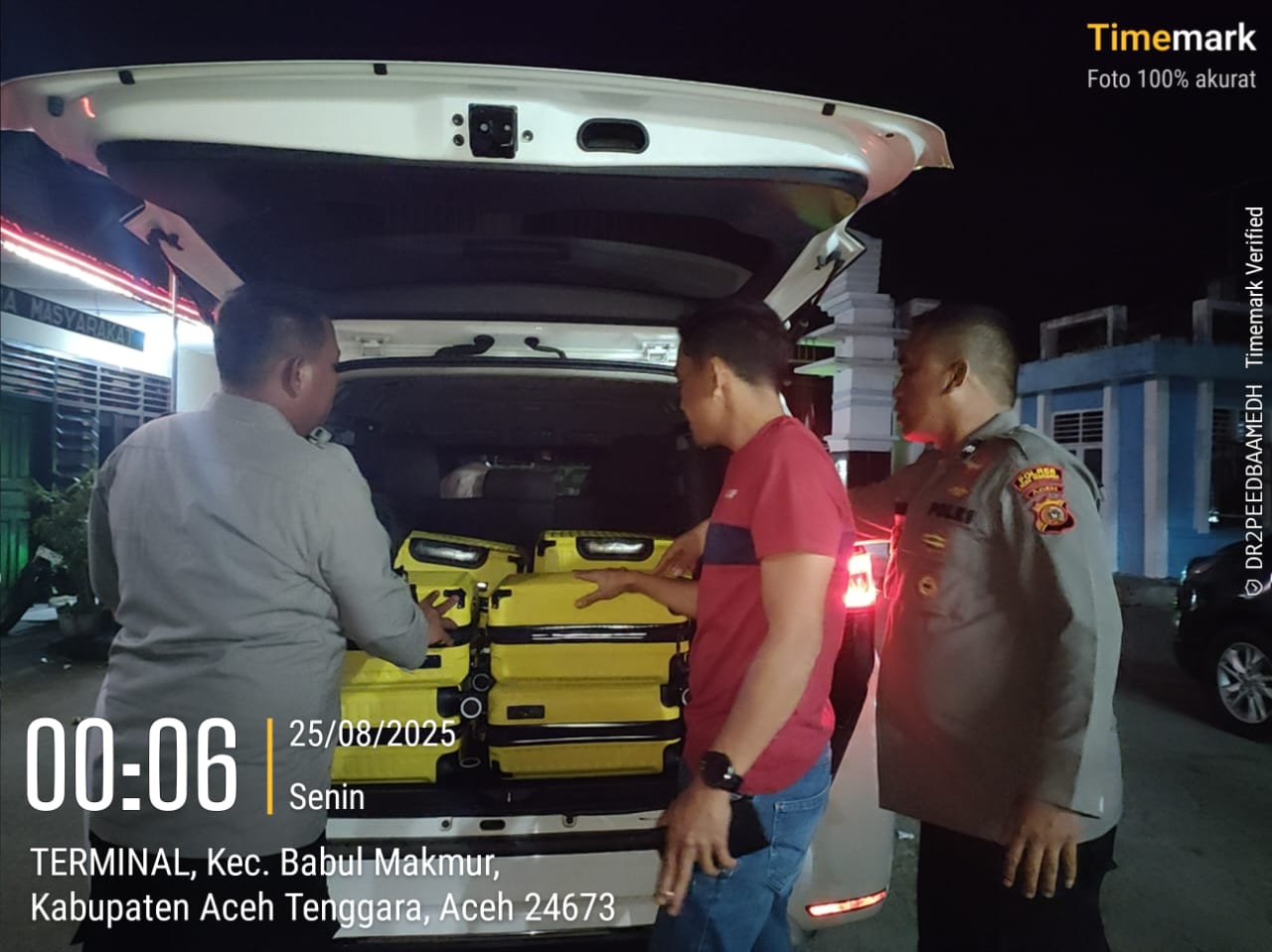 Aceh Tenggara – Dalam rangka menjaga keamanan dan ketertiban masyarakat, jajaran Polsub Sektor Lawe Pakam Polres Aceh Tenggara melaksanakan kegiatan pemeriksaan kendaraan di jalur perbatasan Aceh – Sumatera Utara. Kegiatan ini berlangsung pada Senin (25/8/2025) mulai pukul 20.00 WIB bertempat di Desa Pintu Alas, Kecamatan Babul Makmur, Kabupaten Aceh Tenggara.