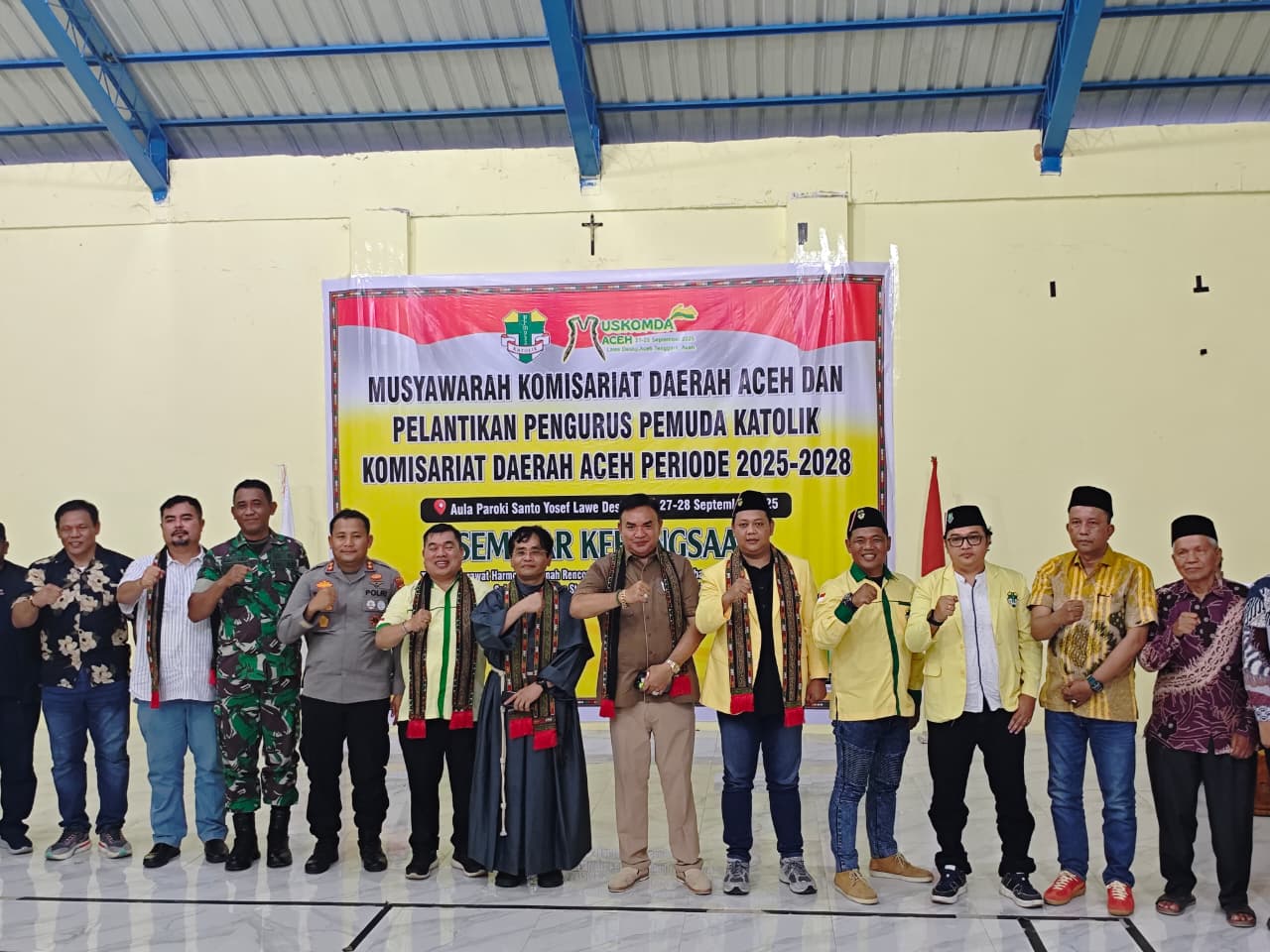 Kutacane – Bupati Aceh Tenggara H,M, Salim Fakhri,SE,MM bersama Kapolres Aceh Tenggara AKBP Yulhendri, S.I.K, juga jajaran Forum Koordinasi Pimpinan Daerah (Forkopimda) menghadiri Musyawarah Komisariat Daerah (Muskomda) dan Pelantikan Pengurus Pemuda Katolik Daerah Aceh periode 2025–2028.